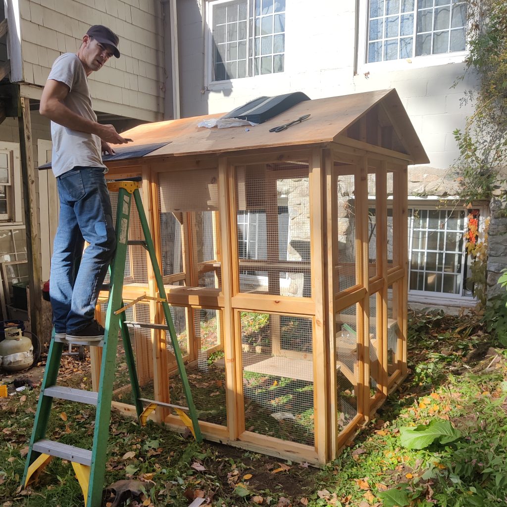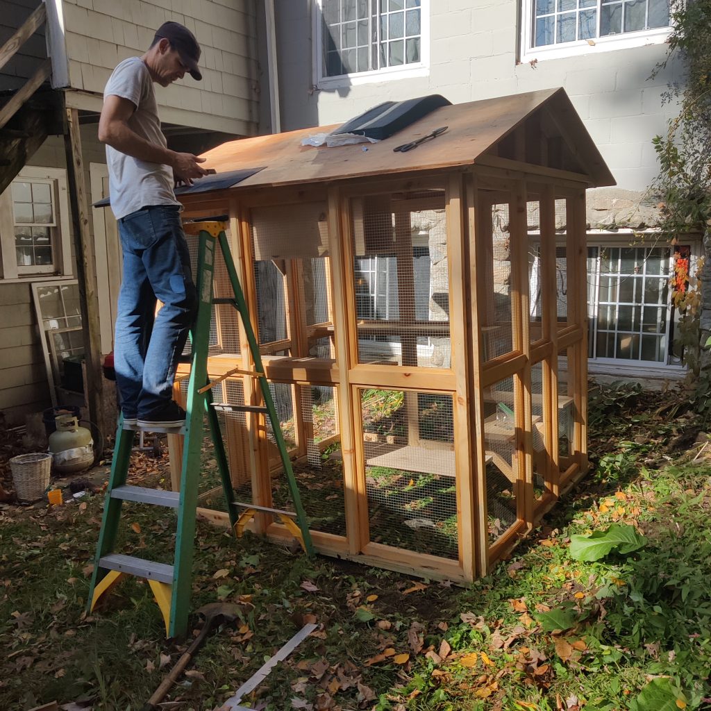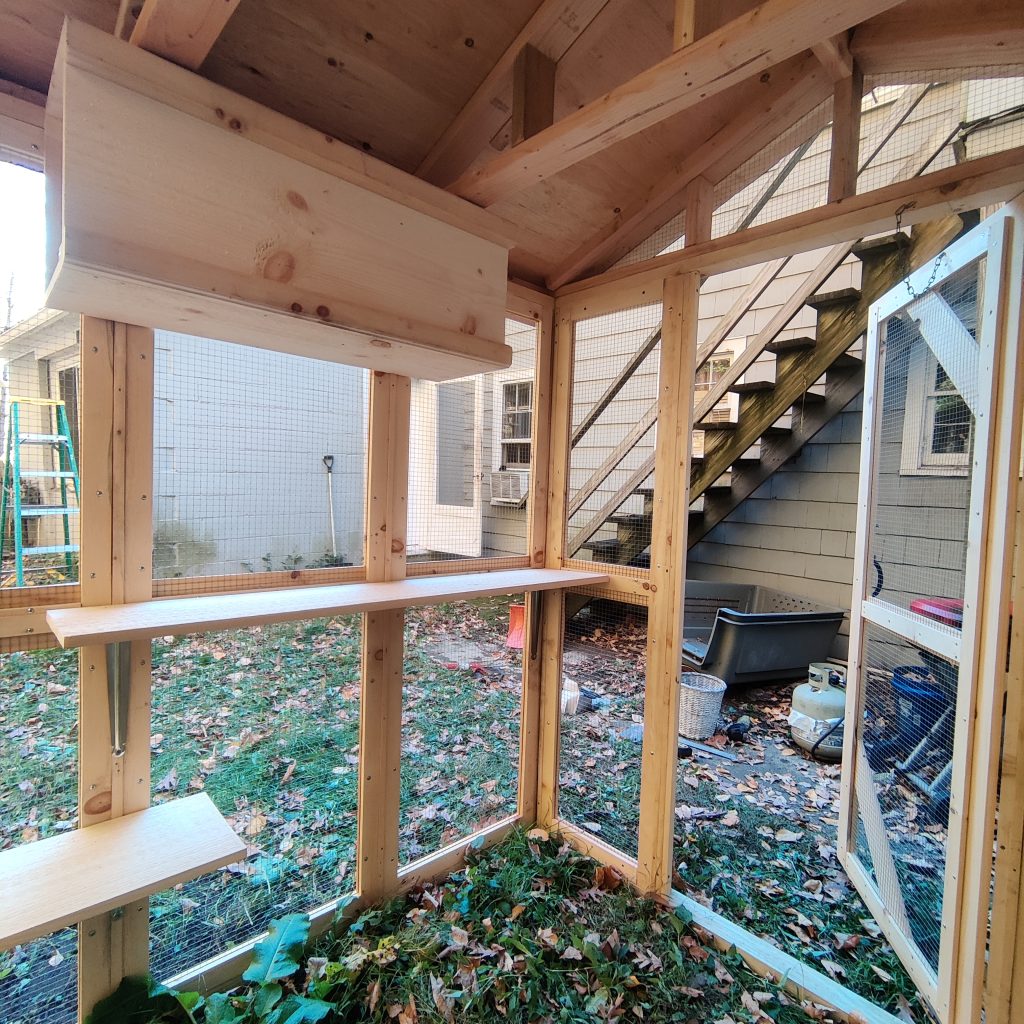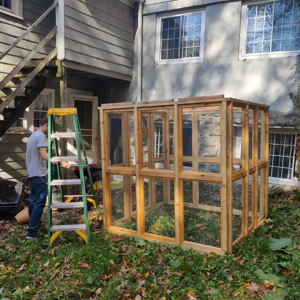 6′ x 6′ outdoor relaxation space for cats. Built by Ned.